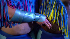 Set in an unspecified future, Josephin Hanke’s work LEADERS* is a science fiction series surrounding its protagonists’ (avatars) struggle for freedom within a dystopian world. In the course of the first episode, titled Fermented Prospects, NN—a figure that seems to have directly emerged from Ulrike Ottinger’s subversive and magical film cosmos—collects data chips from three robots with whom she immediately forms a conspiratorial alliance. The avatars’ subversive behavior is accompanied by an erotic exchange that mutates into their form of communication and resistance. While trying to survive in the capitalist’s ruins they have inherited, they embark on a quest for collective futurity, performed and embodied as a constant longing for a utopian togetherness.